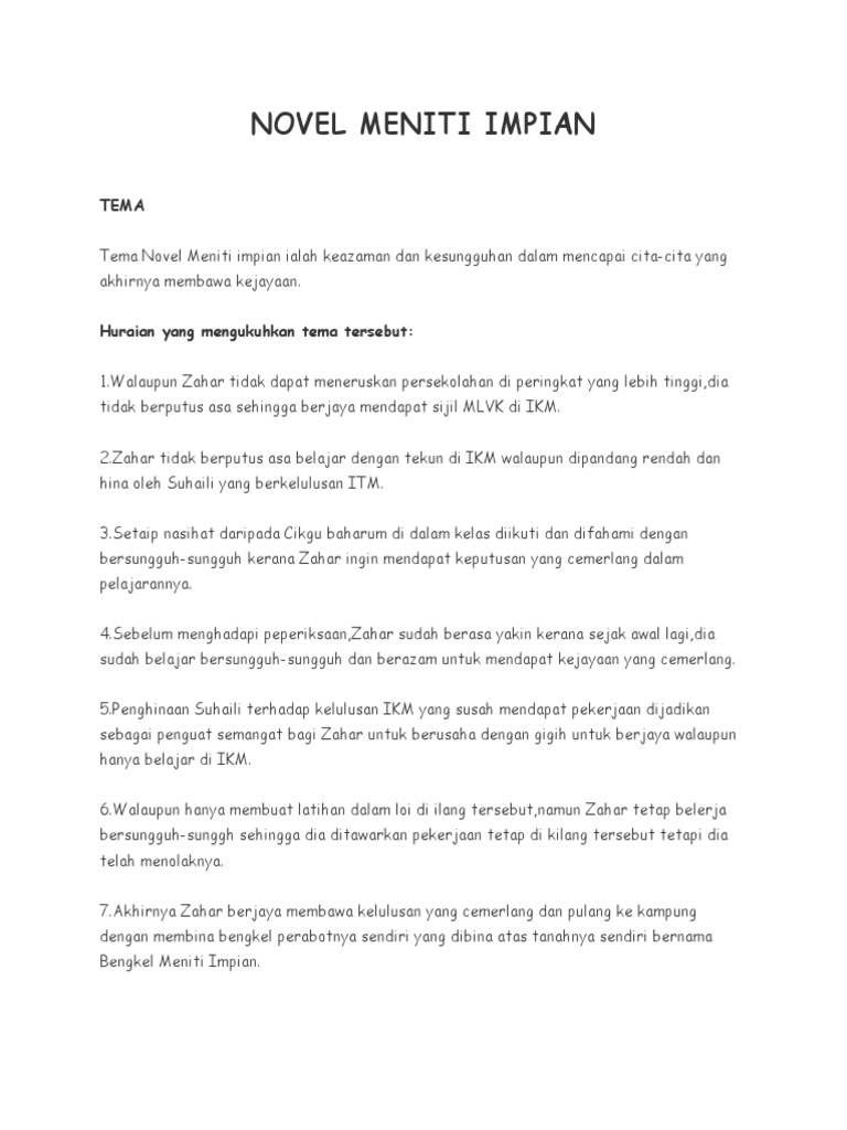 Watak Dan Pewatakan Zahar Novel Meniti Impian Pdf